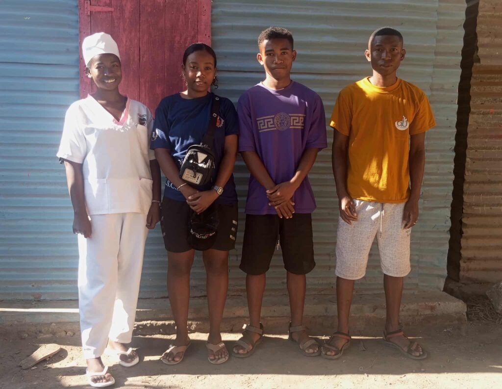Nous accompagnons chaque élève dans la progression de ses études. Sanah, notre correspondante sur Tuléar, s’occupe de leur suivi. Pour cette année 2025/2026, les frais de scolarité sont de 150€ à 230€ par an pour les élèves de l’école maternelle au lycée.
